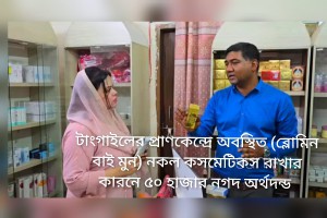 টাঙ্গাইলে দেশি পণ্যকে বিদেশি বলে বিক্রি এবং বিভিন্ন ব্র্যান্ডের নকল পণ্য বাজারজাত করার অভিযোগে বন্ড, টপটেন ও মেঘামার্ট নামে তিনটি প্রতিষ্ঠানকে মোট ১ লাখ ১০ হাজার টাকা জরিমানা করেছে জাতীয় ভোক্তা অধিকার সংরক্ষণ অধিদপ্তর। একইসঙ্গে বেশ কিছু নকল পারফিউম ও কসমেটিকস জব্দ করা হয়েছে। বৃহস্পতিবার (১২ মার্চ) দুপুরে টাঙ্গাইল জেলা সদর সড়কের বিভিন্ন ব্র্যান্ডের শোরুমে অভিযান পরিচালনা করে জাতীয় ভোক্তা অধিকার সংরক্ষণ অধিদপ্তর। অভিযানে দেখা যায়, কিছু প্রতিষ্ঠান দেশি তৈরি পণ্যকে বিদেশি পণ্য হিসেবে বিক্রি করছে এবং নামিদামি ব্র্যান্ডের নকল পারফিউম ও কসমেটিকস প্রদর্শন ও বিক্রি করছে। এ সময় চীন, ভারতসহ বিভিন্ন দেশের ব্র্যান্ডের নাম ব্যবহার করে নকল পাঞ্জাবি, প্যান্ট ও অন্যান্য পোশাক বিক্রিরও প্রমাণ পাওয়া যায়। পরে এসব অভিযোগের ভিত্তিতে বন্ডকে ৫০ হাজার টাকা, টপটেনকে ৫০ হাজার টাকা এবং মেঘামার্টকে ১০ হাজার টাকা জরিমানা করা হয়। অভিযানে নেতৃত্ব দেন জেলা ভোক্তা অধিকার সংরক্ষণ অধিদপ্তরের সহকারী পরিচালক আসাদুজ্জামান রোমেল। তিনি বলেন, “দেশি পণ্যকে বিদেশি বলে বিক্রি, নকল পণ্য বাজারজাতকরণ এবং ভোক্তাদের সঙ্গে প্রতারণার অভিযোগে তিনটি প্রতিষ্ঠানকে মোট ১ লাখ ১০ হাজার টাকা জরিমানা করা হয়েছে। পাশাপাশি কিছু নকল পণ্য জব্দ করা হয়েছে।” তিনি আরও জানান, ভোক্তাদের স্বার্থ রক্ষা এবং বাজারে নকল পণ্যের বিস্তার রোধে এ ধরনের অভিযান নিয়মিতভাবে পরিচালনা করা হবে। একইসঙ্গে ব্যবসায়ীদের আইন মেনে ব্যবসা পরিচালনার আহ্বান জানান তিনি।