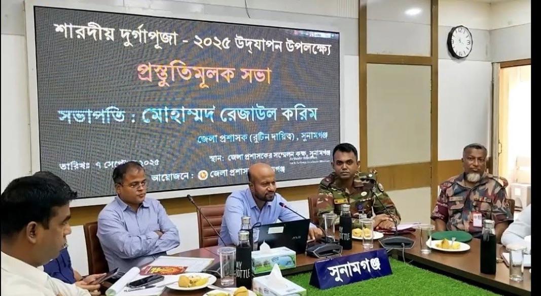 আসন্ন শারদীয় দূর্গাপূজাঁ উপলক্ষে সুনামগঞ্জ জেলা প্রশাসনের উদ্যোগে প্রস্তুতি সভা অনুষ্ঠিত