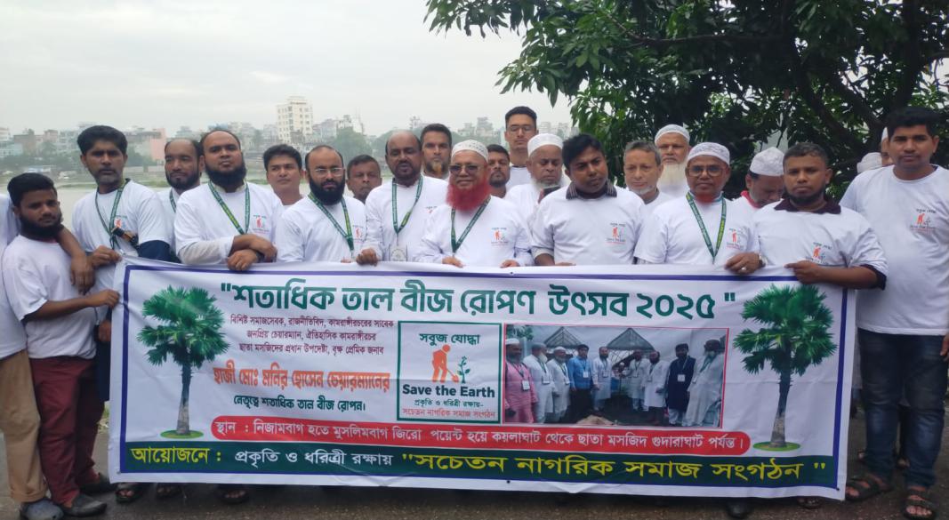 সচেতন নাগরিক সমাজ সংগঠনের উদ্যোগে রাজধানীর কামরাঙ্গীচর বেড়িবাঁধ এলাকায় ১০০ তালবীজ রোপণ করা হয়।