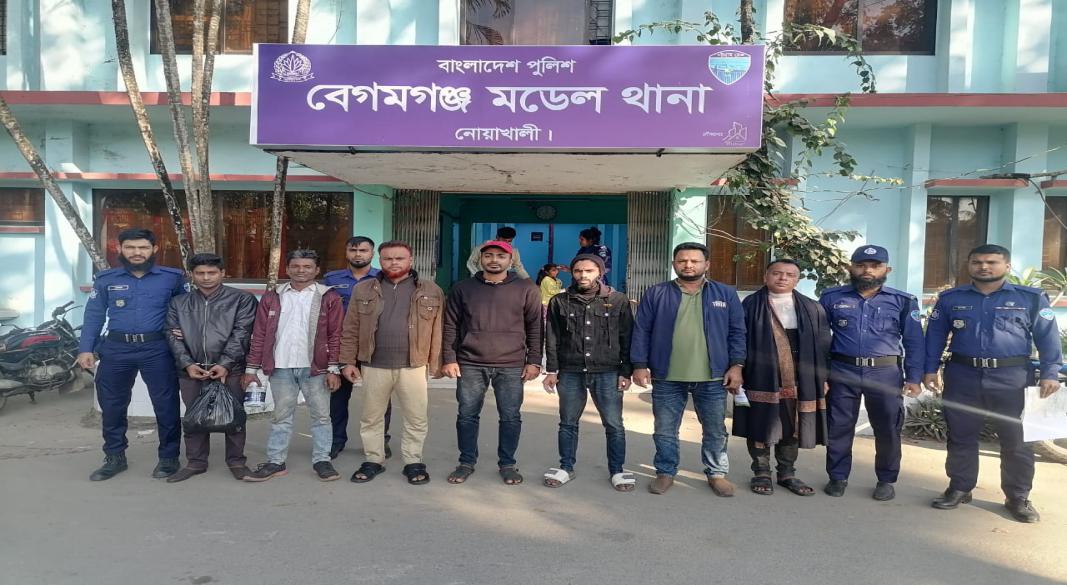 নোয়াখালীর বেগমগঞ্জে পুলিশের অভিযানে সাজাপ্রাপ্ত সহ ৭ আসামি গ্রেফতার
