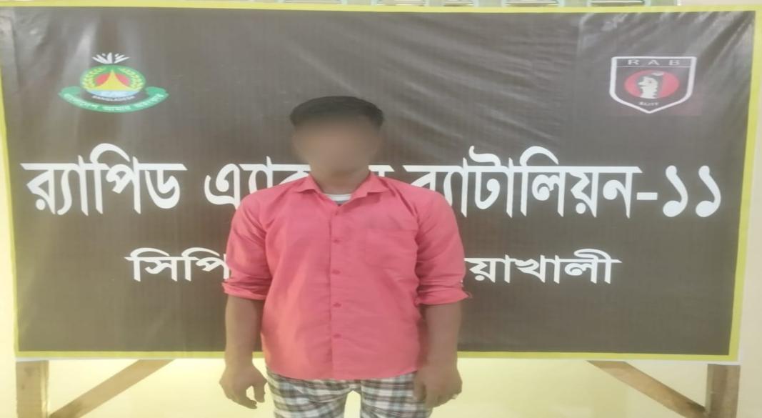 রবিবার দুপুরে নোয়াখালী জেলার বেগমগঞ্জ থানাধীন মিরওয়ারীশপুর ইউপির ১নং ওয়ার্ডস্থ রিয়াজ স্টোরের সামনে থেকে তাকে গ্রেফতার করা হয় বলে জানিয়েছেন র‍্যাব-১১,নোয়াখালী ক্যাম্পের ভারপ্রাপ্ত কোম্পানি কমান্ডার মিঠুন কুন্ড ।