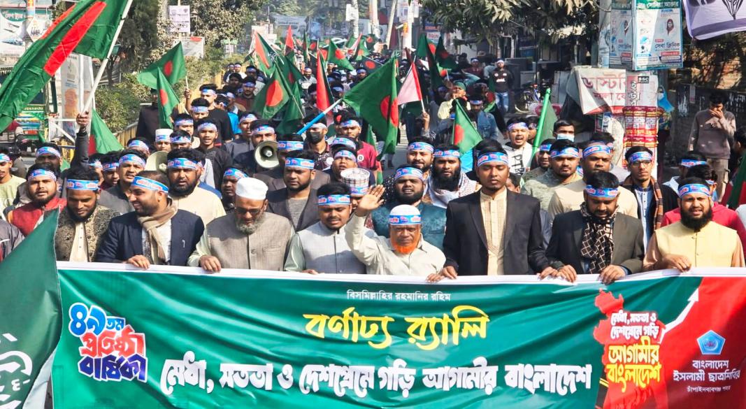 বাংলাদেশ ইসলামী ছাত্রশিবিরের ৪৯তম প্রতিষ্ঠাবার্ষিকী উপলক্ষে সংগঠনটির চাঁপাইনবাবগঞ্জ শহর শাখার উদ্যোগে এক বর্ণাঢ্য র্যালি ও সমাবেশ অনুষ্ঠিত হয়েছে। (৬ই ফেব্রুয়ারী) শুক্রবার সকাল ১০টায় চাঁপাইনবাবগঞ্জ পৌরসভা পার্ক থেকে র্যালি শুরু হয়। সেটি বাতেন খাঁ মোড় হয়ে শান্তি মোড় ও শিবতলা মোড় হয়ে রেহাইচর মোড়ে এসে সংক্ষিপ্ত সমাবেশের মাধ্যমে কর্মসূচি শেষ হয়। ‘মেধা, সততা ও দেশপ্রেমে গড়ি আগামীর বাংলাদেশ’ এ স্লোগান নিয়ে প্রতিষ্ঠাবার্ষিকী উদ্যাপন করেছে বাংলাদেশ ইসলামী ছাত্রশিবির চাঁপাইনবাবগঞ্জ শহর শাখা। র্যালি শেষে সংক্ষিপ্ত সমাবেশে বক্তব্য রাখেন ছাত্রশিবিরের কেন্দ্রীয় সাবেক সভাপতি ও চাঁপাইনবাবগঞ্জ-৩ আসনের জামায়াত মনোনীত প্রার্থী মোঃ নূরুল ইসলাম বুলবুল। মোঃ নূরুল ইসলাম বুলবুল বলেন, ছাত্রশিবির দেশের ছাত্রসমাজকে নৈতিকতা ও আদর্শিক শিক্ষায় গড়ে তুলতে গুরুত্বপূর্ণ ভূমিকা রেখে চলেছে। আগামীতেও এই ধারা অব্যাহত থাকবে ইনশাআল্লাহ। বিশেষ অতিথির বক্তব্য রাখেন, ছাত্রশিবিরের কেন্দ্রীয় কমিটির সাবেক আন্তর্জাতিক বিষয়ক সম্পাদক ও জামায়াতের কর্মপরিষদের সদস্য অধ্যক্ষ মোহাম্মদ নজরুল ইসলাম, ছাত্রশিবিরের জেলার সাবেক সভাপতি ও পৌর নায়েবে আমীর এ্যাডভোকেট মোঃ শফিক এনায়েতুল্লাহ। এসময় উপস্থিত ছিলেন, পৌর জামায়াতের আমীর হাফেজ গোলাম রাব্বানী, ইসলামী ছাত্রশিবির চাঁপাইনবাবগঞ্জ শহর শাখার সভাপতি মোঃ আব্দুল আজিজ, সম্পাদক মোঃ ইউসুফ আল গালিবসহ বিভিন্ন পর্যায়ের নেতৃবৃন্দ ও বিপুল সংখ্যক কর্মী উপস্থিত ছিলেন।