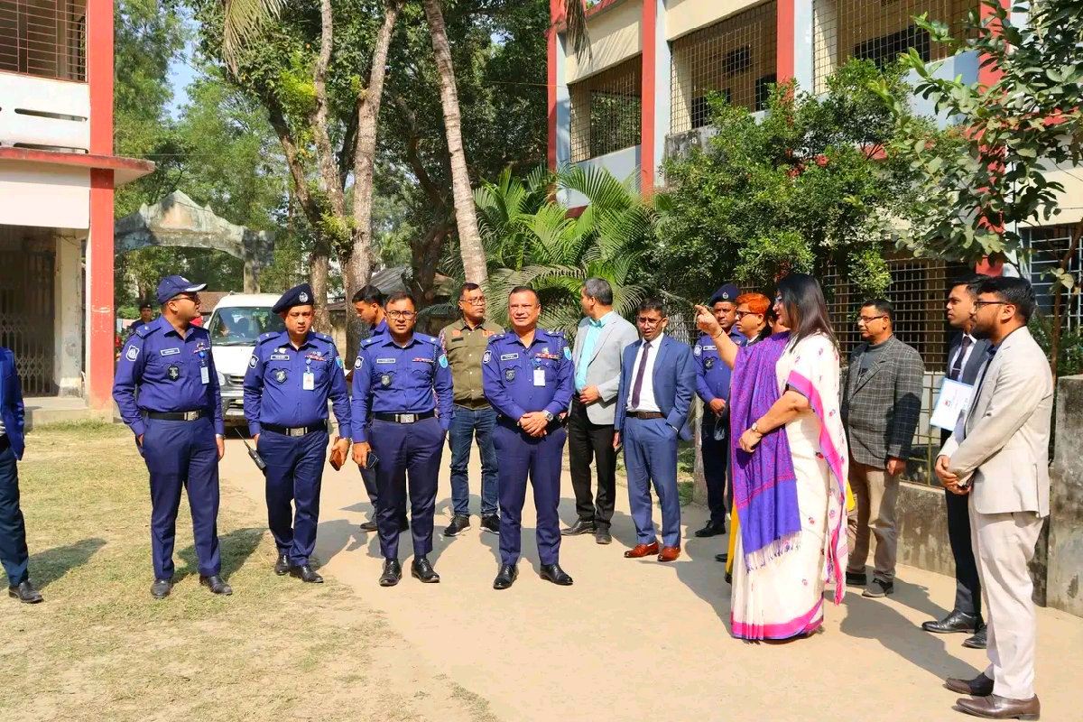 দেলদুয়ার থানাধীন বিভিন্ন ভোটকেন্দ্র সরেজমিনে পরিদর্শন করেন জেলা প্রশাসক ও রিটার্নিং অফিসার, টাঙ্গাইল এবং পুলিশ সুপার টাঙ্গাইল মহোদয়। আসন্ন ত্রয়োদশ জাতীয় সংসদ নির্বাচনকে সামনে রেখে টাঙ্গাইল জেলার আইন-শৃঙ্খলা পরিস্থিতি ও সার্বিক নিরাপত্তা ব্যবস্থা পর্যবেক্ষণের অংশ হিসেবে দেলদুয়ার থানাধীন বিভিন্ন ভোটকেন্দ্র সরেজমিনে পরিদর্শন করেন জনাব শরীফা হক জেলা প্রশাসক ও রিটার্নিং অফিসার টাঙ্গাইল এবং জনাব মুহম্মদ শামসুল আলম সরকার পুলিশ সুপার, টাঙ্গাইল মহোদয়। পরিদর্শনকালে পুলিশ সুপার মহোদয় সংশ্লিষ্ট ভোটকেন্দ্রসমূহের সার্বিক নিরাপত্তা ব্যবস্থা অবকাঠামোগত প্রস্তুতি, ভোটগ্রহণের পরিবেশ এবং দায়িত্বপ্রাপ্ত পুলিশ সদস্যদের কার্যক্রম সরেজমিনে পর্যালোচনা করেন। এ সময় তিনি নির্বাচনকালীন দায়িত্ব পালনে সর্বোচ্চ পেশাদারিত্ব, সতর্কতা ও নিরপেক্ষতা বজায় রাখার বিষয়ে প্রয়োজনীয় দিকনির্দেশনা প্রদান করেন। তিনি আরও জানান, ভোটারগণ যেন শান্তিপূর্ণ ও নির্ভয়ে তাদের সাংবিধানিক ভোটাধিকার প্রয়োগ করতে পারেন, সে লক্ষ্যে পর্যাপ্ত নিরাপত্তা ব্যবস্থা গ্রহণ করা হয়েছে। অবাধ, সুষ্ঠু ও শান্তিপূর্ণ নির্বাচন নিশ্চিত করতে জেলা পুলিশের সার্বিক নিরাপত্তা ও নজরদারি কার্যক্রম অব্যাহত থাকবে। এ সময় আঞ্চলিক নির্বাচন কর্মকর্তা, সিনিয়র জেলা নির্বাচন অফিসার, টাঙ্গাইল উপজেলা নির্বাহী অফিসার দেলদুয়ার টাঙ্গাইলঅতিরিক্ত জেলা প্রশাসকগণসহ জনাব মোঃ আদিবুল ইসলাম পিপিএম-সেবা, অতিরিক্ত পুলিশ সুপার (ক্রাইম অ্যান্ড অপস্), টাঙ্গাইল; জনাব এইচ. এম. মাহবুব রেজওয়ান সিদ্দিকী, অতিরিক্ত পুলিশ সুপার (সদর সার্কেল), টাঙ্গাইল জনাব মোঃ আদনান মুস্তাফিজ, সহকারী পুলিশ সুপার (মির্জাপুর সার্কেল), টাঙ্গাইলসহ অন্যান্য কর্মকর্তা ও স্থানীয় গণ্যমান্য ব্যক্তিবর্গ উপস্থিত ছিলেন।