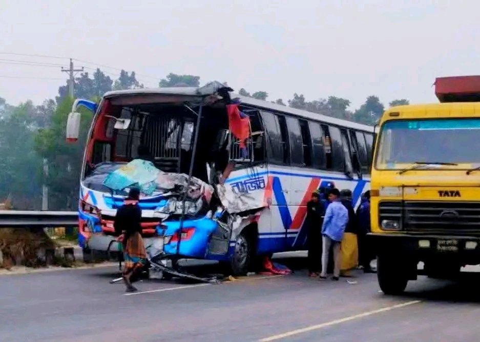 ঢাকা–টাংগাইল মহাসড়কের ভাতকুড়ায় বাস–ট্রাকের মুখোমুখি সংঘর্ষ