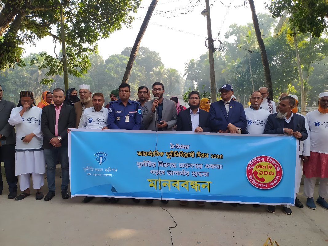 দুর্নীতিবিরোধী দিবস উপলক্ষে মানববন্ধন ও আলোচনা সভা অনুষ্ঠিত