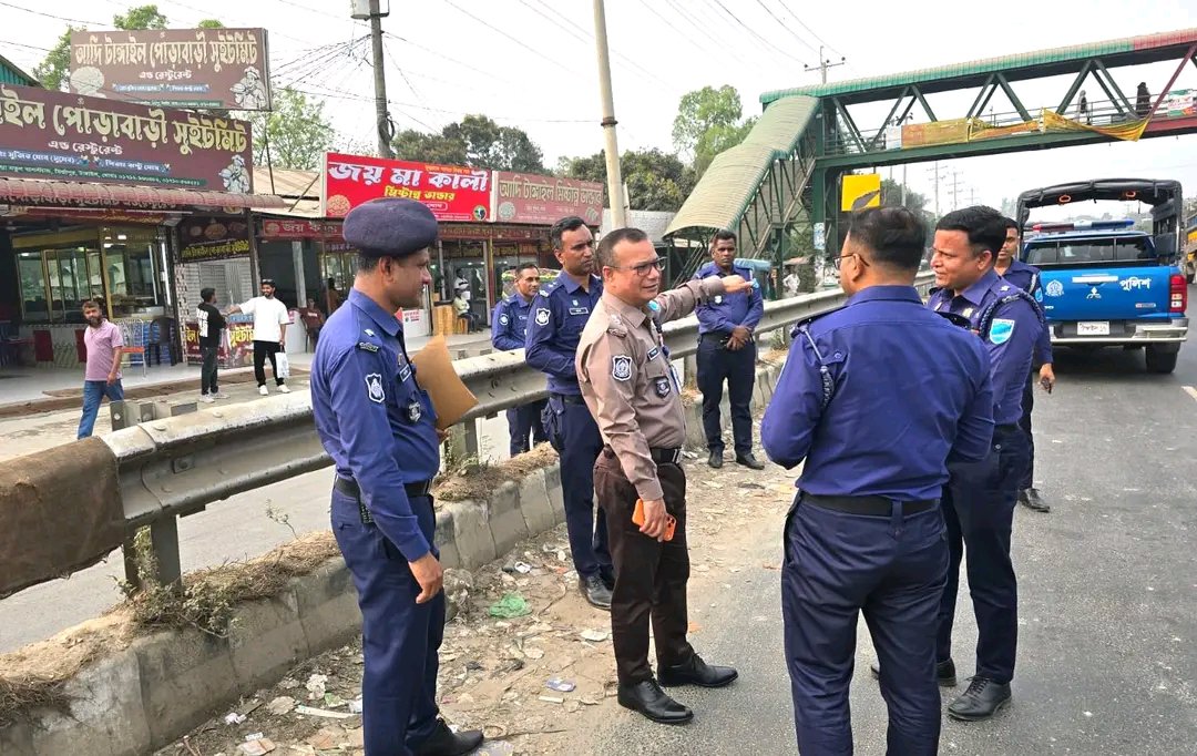 ঈদযাত্রা নির্বিঘ্ন রাখতে ঢাকা–টাঙ্গাইল মহাসড়ক পরিদর্শনে টাঙ্গাইলের পুলিশ সুপার।আসন্ন পবিত্র ঈদ-উল-ফিতর-২০২৬ উপলক্ষে ঘরমুখো মানুষের নিরাপদ ও নির্বিঘ্ন যাত্রা নিশ্চিত করতে ঢাকা–টাঙ্গাইল মহাসড়কের বিভিন্ন গুরুত্বপূর্ণ পয়েন্ট পরিদর্শন করেছেন টাঙ্গাইলের পুলিশ সুপার জনাব মুহম্মদ শামসুল আলম সরকার।সোমবার ০৯ মার্চ ২০২৬ ইং সকালে ঢাকা–টাঙ্গাইল মহাসড়কের গোড়াই দেওহাটা মির্জাপুর বাসস্ট্যান্ড জামুর্কী ও পাকুল্যা বাসস্ট্যান্ডসহ বেশ কয়েকটি গুরুত্বপূর্ণ স্থানে সরেজমিনে পরিদর্শন করেন তিনি। এ সময় মহাসড়কের সার্বিক পরিস্থিতি যানবাহনের চাপ সম্ভাব্য যানজটের স্থান সড়কের অবস্থা এবং ট্রাফিক ব্যবস্থাপনা নিয়ে বিস্তারিত খোঁজখবর নেন।পরিদর্শনকালে পুলিশ সুপার সংশ্লিষ্ট কর্মকর্তাদের সঙ্গে কথা বলেন এবং ঈদকে সামনে রেখে মহাসড়কে যানজট নিরসন যানবাহনের শৃঙ্খলা বজায় রাখা ও যাত্রীদের নিরাপদ যাতায়াত নিশ্চিত করতে প্রয়োজনীয় দিকনির্দেশনা প্রদান করেন। তিনি বিশেষ করে মহাসড়কের যেসব পয়েন্টে প্রতিবছর ঈদকে কেন্দ্র করে অতিরিক্ত যানবাহনের চাপ সৃষ্টি হয় সেসব স্থানে অতিরিক্ত পুলিশ মোতায়েন ট্রাফিক ব্যবস্থাপনা জোরদার এবং যাত্রীসেবা নিশ্চিত করার ওপর গুরুত্বারোপ করেন।পুলিশ সুপার বলেন ঈদকে কেন্দ্র করে প্রতি বছর ঢাকা–টাঙ্গাইল মহাসড়কে যানবাহনের চাপ বেড়ে যায়। তাই যাত্রীদের ভোগান্তি কমাতে এবং যানজট এড়াতে জেলা পুলিশের পক্ষ থেকে আগাম পরিকল্পনা গ্রহণ করা হয়েছে।মহাসড়কের গুরুত্বপূর্ণ পয়েন্টগুলোতে পুলিশ ও ট্রাফিক পুলিশের টহল জোরদার করা হবে এবং যেকোনো ধরনের অবৈধ পার্কিং যত্রতত্র গাড়ি থামানো কিংবা সড়কে প্রতিবন্ধকতা সৃষ্টি হলে তাৎক্ষণিক ব্যবস্থা নেওয়া হবে।তিনি আরও বলেন ঈদযাত্রাকে স্বস্তিদায়ক করতে সংশ্লিষ্ট সব সংস্থার সঙ্গে সমন্বয় করে কাজ করা হচ্ছে। পাশাপাশি চালক ও পরিবহন সংশ্লিষ্টদেরও ট্রাফিক আইন মেনে চলার আহ্বান জানান তিনি। যাত্রীদের নিরাপত্তা নিশ্চিত করতে মহাসড়কে নিয়মিত টহল, চেকপোস্ট স্থাপন এবং প্রয়োজন অনুযায়ী অতিরিক্ত ফোর্স মোতায়েন করা হবে বলেও জানান তিনি।এ সময় অতিরিক্ত পুলিশ সুপার (ক্রাইম অ্যান্ড অপস্) জনাব মোঃ আদিবুল ইসলাম পিপিএম-সেবা মির্জাপুর থানার অফিসার ইনচার্জসহ জেলা পুলিশের অন্যান্য কর্মকর্তারা উপস্থিত ছিলেন। তারা মহাসড়কের বিভিন্ন পয়েন্টে দায়িত্ব পালনরত পুলিশ সদস্যদের সঙ্গে কথা বলেন এবং দায়িত্ব পালনে প্রয়োজনীয় নির্দেশনা প্রদান করেন।উল্লেখ্য আসন্ন ঈদকে সামনে রেখে ঢাকা–টাঙ্গাইল মহাসড়ক দিয়ে উত্তরবঙ্গসহ দেশের বিভিন্ন জেলায় বিপুল সংখ্যক মানুষ যাতায়াত করেন। ফলে মহাসড়কটিতে যানবাহনের চাপ