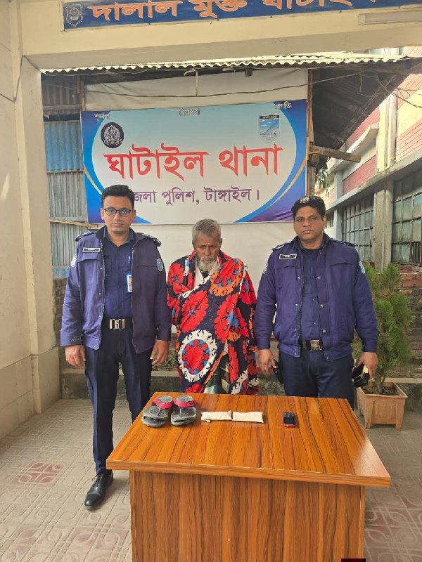 ঘাটাইলে স্যান্ডেলের সোলের ভেতর লুকানো ৮৫ গ্রাম হেরোইন উদ্ধার গ্রেফতার ১ ০৭ জানুয়ারি ২০২৬ ইং তারিখে টাঙ্গাইল জেলার ঘাটাইল থানা এলাকায় মাদকবিরোধী অভিযানে অভিনব কায়দায় লুকিয়ে রাখা বিপুল পরিমাণ হেরোইন উদ্ধার করেছে পুলিশ। এ সময় ৮৫ (পঁচাশি) গ্রাম হেরোইনসহ এক মাদক কারবারিকে গ্রেফতার করা হয়েছে। টাঙ্গাইল জেলার পুলিশ সুপার মুহম্মদ শামসুল আলম সরকার-এর সার্বিক দিকনির্দেশনায় এবং অতিরিক্ত পুলিশ সুপার (গোপালপুর সার্কেল) ফৌজিয়া হাবীব খান-এর নেতৃত্বে এ অভিযান পরিচালিত হয়। অভিযানে নেতৃত্ব দেন ঘাটাইল থানার অফিসার ইনচার্জ মোঃ মোকছেদুর রহমান। অভিযানে আরও অংশগ্রহণ করেন এসআই (নিরস্ত্র) রাজু আহমেদ, এসআই (নিরস্ত্র) নাজিম উদ্দিনসহ সঙ্গীয় অফিসার ও ফোর্স।পুলিশ জানায়, গত ০৬ জানুয়ারি ২০২৬ খ্রিস্টাব্দ রাত আনুমানিক ৭টা ৪৫ মিনিটে ঘাটাইল থানাধীন ঘাটাইল কলেজ মোড় এলাকায় ইউসিবি ব্যাংকের সামনে পাকা রাস্তার ওপর অভিযান পরিচালনা করা হয়। এ সময় সন্দেহভাজন ব্যক্তি মোঃ মজিবর রহমান (৬৯)-কে আটক করা হয়। তিনি রাজশাহী জেলার গোদাগাড়ী থানার ভুবনপাড়া গ্রামের মৃত ইমাজ উদ্দিনের ছেলে। তল্লাশিকালে গ্রেফতারকৃত আসামির পরিহিত একজোড়া স্যান্ডেলের সোলের ভেতর অভিনব কায়দায় লুকিয়ে রাখা ৮৫ গ্রাম হেরোইন উদ্ধার করা হয়। উদ্ধারকৃত হেরোইনের আনুমানিক বাজার মূল্য প্রায় ৮ লাখ ৫০ হাজার টাকা বলে জানিয়েছে পুলিশ।এ ঘটনায় ঘাটাইল থানায় মামলা নং-১০,তারিখ ০৭ জানুয়ারি ২০২৬, মাদকদ্রব্য নিয়ন্ত্রণ আইন, ২০১৮ এর ৩৬(১) সারণির ৮(গ)/৪১ ধারা অনুযায়ী মামলা রুজু করা হয়েছে।গ্রেফতারকৃত আসামির বিরুদ্ধে আইনানুগ ব্যবস্থা গ্রহণ শেষে তাকে বিজ্ঞ আদালতে প্রেরণ করা হয়েছে। পুলিশ জানিয়েছে, মাদকবিরোধী অভিযান অব্যাহত থাকবে।