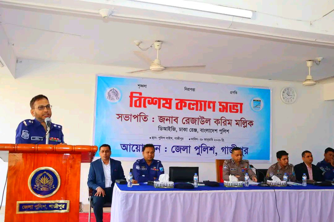 ইতিহাসের সেরা নির্বাচন উপহার দিতে বাংলাদেশ পুলিশ বাহিনী দৃঢ় প্রতিজ্ঞাবদ্ধ — মাননীয় ডিআইজি ঢাকা রেঞ্জ ইতিহাসের সেরা অবাধ ও নিরপেক্ষ জাতীয় সংসদ নির্বাচন উপহার দিতে বাংলাদেশ পুলিশ বাহিনী দৃঢ় প্রতিজ্ঞাবদ্ধ বলে মন্তব্য করেছেন ঢাকা রেঞ্জের মাননীয় ডিআইজি জনাব রেজাউল করিম মল্লিক।(২৮ জানুয়ারি ২০২৬ খ্রি.) সকাল ১০টায় গাজীপুর পুলিশ লাইন্সে বিশেষ কল্যাণ সভায় প্রধান অতিথির বক্তব্যে তিনি এসব কথা বলেন।বিশেষ কল্যাণ সভায় অংশগ্রহণের উদ্দেশ্যে ঢাকা রেঞ্জের ডিআইজি জনাব রেজাউল করিম মল্লিক গাজীপুর পুলিশ লাইন্সে উপস্থিত হলে তাঁকে ফুলেল শুভেচ্ছা ও অভিনন্দন জানান গাজীপুর জেলার পুলিশ সুপার জনাব মোঃ শরিফ উদ্দিন। এ সময় জেলা পুলিশের একটি চৌকস দল ডিআইজি মহোদয়কে গার্ড অব অনার প্রদান করে। ডিআইজি মহোদয়ের গাজীপুর জেলা সফর উপলক্ষে পুলিশ লাইন্সের ড্রিল শেডে আয়োজিত বিশেষ কল্যাণ সভায় সভাপতিত্ব করেন পুলিশ সুপার গাজীপুর। সভায় জেলা পুলিশের বিভিন্ন পদমর্যাদার কর্মকর্তা ফোর্স সদস্য ও সিভিল স্টাফরা তাঁদের পেশাগত বিভিন্ন সমস্যা সুযোগ-সুবিধা বৃদ্ধি, মাঠপর্যায়ে দায়িত্ব পালনের প্রতিবন্ধকতা এবং সমসাময়িক নানা বিষয় তুলে ধরেন।ডিআইজি মহোদয় মনোযোগ সহকারে তাঁদের বক্তব্য শোনেন এবং সংশ্লিষ্ট সমস্যাগুলো দ্রুত সমাধানের আশ্বাস প্রদান করেন। বক্তব্যের শুরুতে তিনি মহান মুক্তিযুদ্ধে শহীদ বীর মুক্তিযোদ্ধা এবং জুলাই আন্দোলনে শহীদদের প্রতি গভীর শ্রদ্ধা নিবেদন করেন এবং আহতদের দ্রুত সুস্থতা কামনা করেন।আসন্ন ত্রয়োদশ জাতীয় সংসদ নির্বাচন প্রসঙ্গে তিনি বলেন পুলিশকে অবশ্যই সততা নিরপেক্ষতা ও পেশাদারিত্বের সঙ্গে দায়িত্ব পালন করতে হবে। নির্বাচনকে কেন্দ্র করে কেউ বিশৃঙ্খলা সৃষ্টির চেষ্টা করলে তাদের বিরুদ্ধে কঠোর আইনানুগ ব্যবস্থা গ্রহণের নির্দেশ দেন তিনি। মাননীয় প্রধান উপদেষ্টার প্রত্যাশা তুলে ধরে ডিআইজি মহোদয় বলেন ইতিহাসের সেরা নির্বাচন উপহার দিতে বাংলাদেশ পুলিশ বাহিনী দৃঢ় প্রতিজ্ঞাবদ্ধ।এছাড়াও জনগণের বন্ধু হিসেবে পুলিশকে সততা নিষ্ঠা ও পেশাদারিত্বের মাধ্যমে দায়িত্ব পালনের আহ্বান জানান তিনি। পুলিশ ও জনগণের মধ্যে সুসম্পর্ক বজায় রেখে বাহিনীর ভাবমূর্তি আরও উজ্জ্বল করতে প্রয়োজনীয় দিকনির্দেশনা প্রদান করেন ডিআইজি মহোদয়। এরপর পুলিশ সুপারের কার্যালয়, গাজীপুরের কনফারেন্স রুমে বিশেষ অপরাধ পর্যালোচনা সভা অনুষ্ঠিত হয়। উক্ত সভায়ও প্রধান অতিথি হিসেবে উপস্থিত ছিলেন ডিআইজি জনাব রেজাউল করিম মল্লিক। সভায় জেলা পুলিশের ঊর্ধ্বতন কর্মকর্তাসহ বিভিন্ন থানার অফিসার ইনচার্জদের উদ্দেশ্যে তিনি আইন-শৃঙ্খলা পরিস্থিতি, অপরাধ নিয়ন্ত্রণ ও পেশাগত দায়ি