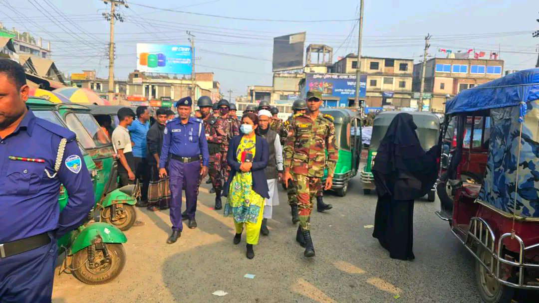 কালিহাতীতে আসন্ন জাতীয় সংসদ নির্বাচন উপলক্ষে যৌথ বাহিনীর টহল আসন্ন ত্রয়োদশ জাতীয় সংসদ নির্বাচনকে সামনে রেখে আইনশৃঙ্খলা পরিস্থিতি স্বাভাবিক রাখা ও নির্বাচনী আচরণবিধি প্রতিপালন নিশ্চিত করতে টাঙ্গাইলের কালিহাতী উপজেলায় যৌথ বাহিনীর টহল কার্যক্রম পরিচালিত হয়েছে। সোমবার (২ ফেব্রুয়ারি ২০২৬) সহকারী কমিশনার (ভূমি) কালিহাতী টাঙ্গাইল ও বিজ্ঞ এক্সিকিউটিভ ম্যাজিস্ট্রেটের নেতৃত্বে উপজেলার বিভিন্ন গুরুত্বপূর্ণ স্থানে এ যৌথ টহল পরিচালনা করা হয়। টহল চলাকালে সংশ্লিষ্ট বাহিনীর সদস্যরা নির্বাচনী পরিবেশ শান্তিপূর্ণ রাখতে সতর্ক অবস্থানে থাকার পাশাপাশি সাধারণ জনগণের মধ্যে নিরাপত্তাবোধ জোরদার করেন। নির্বাচনকে কেন্দ্র করে যেকোনো অনিয়ম বা আইনবহির্ভূত কর্মকাণ্ড কঠোরভাবে দমন করা হবে বলে এ সময় জানানো হয়।