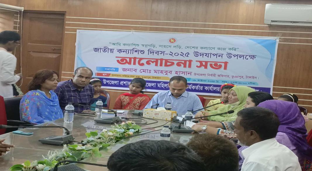 আমি কন্যা শিশু, স্বপ্ন গড়ি, সাহসী লড়ি, দেশের কল্যাণে কাজ করি" এই প্রতিপাদ্য নিয়ে টাঙ্গাইলের ভূঞাপুরে জাতীয় কন্যা শিশু দিবস উদযাপন উপলক্ষে আলোচনা সভা অনুষ্ঠিত হয়।