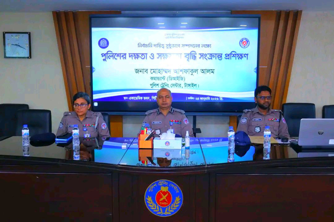 নির্বাচনী দায়িত্ব সফল করতে পুলিশের দক্ষতা বৃদ্ধিতে টাঙ্গাইলে TOT কোর্স উদ্বোধন