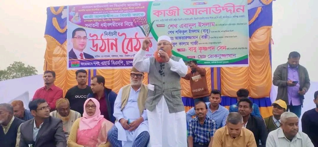 মোস্তফা মাসুদ: বিএনপির জাতীয় নির্বাহী কমিটির সদস্য ও সাতক্ষীরা–৩ (আশাশুনি–কালীগঞ্জ) আসনের ধানের শীষের প্রার্থী সাবেক এমপি কাজী আলাউদ্দিন বলেছেন, আশাশুনি–কালীগঞ্জে সন্ত্রাস, দখলবাজি ও চাঁদাবাজির কোনো স্থান হবে না। জনগণের অধিকার, সম্পদ ও সম্মান রক্ষায় আমি সব সময় দৃঢ় অবস্থানে ছিলাম, আগামীতেও থাকব। চম্পাফুল ইউনিয়ন বিএনপির উদ্যোগে সনাতনী ধর্মাবলম্বীদের নিয়ে আয়োজিত নির্বাচনী উঠান বৈঠকে প্রধান অতিথির বক্তব্যে তিনি এসব কথা বলেন।কাজী আলাউদ্দিন আরও বলেন, সনাতনী ধর্মাবলম্বীদের নিরাপত্তা, ধর্মীয় স্বাধীনতা ও পূজা–পার্বণে নির্বিঘ্ন পরিবেশ নিশ্চিত করা আমি অতীতেও করেছি, ভবিষ্যতেও এটিই হবে আমার প্রথম দায়িত্ব। এ সময় তিনি বলেন, আমি এই দূর্গত থালনায় একটি সাইক্লোন সেল্টার করে দিয়েছি, নির্বাচিত হলে আরও ২টি সাইক্লোন সেল্টার করার ব্যবস্থা করবো, শিক্ষার মান উন্নয়নে কাজ করব।তিনি দাবি করেন, তার তৎকালীন নির্বাচনী এলাকার ১৭টি ইউনিয়নের প্রতিটি মন্দিরে তিনি নিয়মিত অনুদান দিয়েছেন এবং সাম্প্রদায়িক সম্প্রীতি রক্ষায় সর্বোচ্চ ভূমিকা রেখেছেন। দখল ও চাঁদাবাজি রোধে অতীতের মতো ভবিষ্যতেও কঠোর অবস্থানে থাকার ঘোষণা দেন তিনি। পাশাপাশি ধানের শীষে ভোট দিয়ে গণতন্ত্র পুনরুদ্ধার ও ন্যায়বিচার প্রতিষ্ঠার আহ্বান জানান।উঠান বৈঠক শেষে কাজী আলাউদ্দিনের একক প্রচেষ্টায় ধর্ম মন্ত্রণালয়ের বরাদ্দকৃত অর্থ চম্পাফুল ইউনিয়নের থালনা মন্দির কর্তৃপক্ষের কাছে হস্তান্তর করা হয়। এসময় তিনি বিএনপির চেয়ারপার্সন সাবেক প্রধানমন্ত্রী বেগম খালেদা জিয়ার সুস্থতা কামনা করে দোয়া মোনাজাত পরিচালনা করেন। সভায় ৭নং ওয়ার্ড বিএনপির সভাপতি কৃষ্ণপদ সেনের সভাপতিত্বে এবং কালিগঞ্জ উপজেলা কৃষকদলের আহ্বায়ক মো. রোকনুজ্জামানের সঞ্চালনায় বিশেষ অতিথির বক্তব্য রাখেন, জেলা বিএনপির সদস্য শেখ হেদায়েতুল ইসলাম, কালিগঞ্জ উপজেলা বিএনপির সাবেক সদস্য সচিব শেখ শফিকুল ইসলাম (বাবু), সাবেক সিনিয়র যুগ্ম আহ্বায়ক মো. আকতারুজ্জামান (বাপ্পী), চম্পাফুল ইউনিয়ন বিএনপির সাবেক সদস্য সচিব আবুল কালাম গাজী প্রমুখ।এতে জেলা উপজেলা, ও ইউনিয়ন বিএনপির বিভিন্ন নেতাকর্মীরা উপস্থিত ছিলেন।