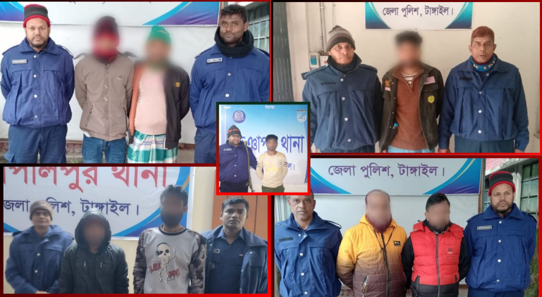 টাঙ্গাইলে জেলা পুলিশের টানা অভিযানে ৮ জন গ্রেপ্তার