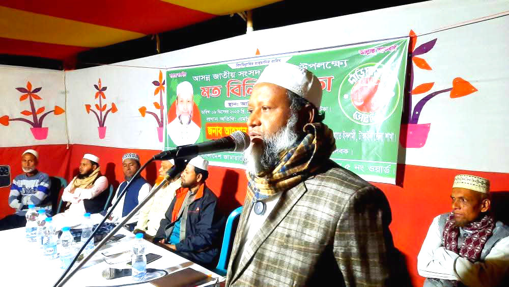 টাঙ্গাইল সদর উপজেলার আউলটিয়া বাজারে বাংলাদেশ জামায়াতে ইসলামী ৩ নং ঘারিন্দা ইউনিয়নের ৫ নং ওয়ার্ডের উদ্যোগে আসন্ন জাতীয় সংসদ নির্বাচন উপলক্ষ্যে মতবিনিময় সভা অনুষ্ঠিত হয়েছে। শনিবার বিকেলে স্থানীয় জনগণের ব্যাপক উপস্থিতিতে অনুষ্ঠিত এ সভায় প্রধান অতিথি হিসেবে উপস্থিত ছিলেন টাঙ্গাইল-৫ (সদর) আসনের বাংলাদেশ জামায়াতে ইসলামী মনোনীত এমপি প্রার্থী ও টাঙ্গাইল জেলা আমীর আহসান হাবিব মাসুদ। প্রধান অতিথির বক্তব্যে তিনি বলেন, “জনগণের ভোটের অধিকার প্রতিষ্ঠা, এলাকার উন্নয়ন ও ন্যায়ভিত্তিক সমাজ গঠনই আমাদের মূল প্রতিশ্রুতি। জনগণের সমর্থন ও ভালোবাসাই আমাদের সবচেয়ে বড় শক্তি।” তিনি আসন্ন নির্বাচনে দলের প্রার্থীকে বিজয়ী করতে সবাইকে ঐক্যবদ্ধভাবে কাজ করার আহ্বান জানান। অনুষ্ঠানে সভাপতিত্ব করেন বিশিষ্ট সমাজ সেবক ফজলুর রহমান। তিনি বলেন, “এলাকার শান্তি, উন্নয়ন ও মানুষের কল্যাণে সৎ ও যোগ্য নেতৃত্ব প্রয়োজন। জনগণের প্রত্যাশা পূরণে সঠিক নেতৃত্ব নির্বাচন অত্যন্ত জরুরি।” মতবিনিময় সভায় স্থানীয় নেতাকর্মী ও সাধারণ মানুষ উচ্ছ্বাসের সঙ্গে বিভিন্ন মতামত তুলে ধরেন। পুরো অনুষ্ঠান জুড়ে ছিল উৎসাহ-উদ্দীপনা ও নির্বাচনী প্রস্তুতির ব্যস্ততা। সভা শেষে অতিথি ও নেতৃবৃন্দ আসন্ন জাতীয় সংসদ নির্বাচনে সুষ্ঠু, শান্তিপূর্ণ ও অংশগ্রহণমূলক নির্বাচনের প্রত্যাশা ব্যক্ত করেন।