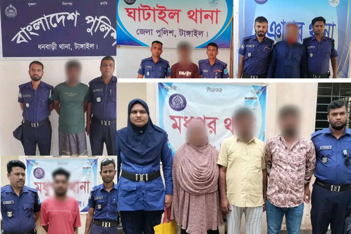 টাঙ্গাইল জেলা পুলিশের অভিযানে গ্রেপ্তার ১৪ জন টাঙ্গাইলে অপরাধ দমনে জেলা পুলিশের নিয়মিত অভিযানে প্রিভেন্টিভ পরোয়ানাভুক্ত ও নিয়মিত মামলায় মোট ১৪ জনকে গ্রেপ্তার করা হয়েছে।জেলা পুলিশ সূত্রে জানা যায় মাদকদ্রব্য নিয়ন্ত্রণ এবং বিভিন্ন মামলা ও পরোয়ানাভুক্তআসামিদের গ্রেপ্তারের লক্ষ্যে জেলার সকল থানা ও ইউনিটের ইনচার্জদের মাঠে থেকে কঠোর অভিযানপরিচালনার নির্দেশ দেন টাঙ্গাইলের পুলিশ সুপার। তারই ধারাবাহিকতায় গত ২৪ ঘণ্টায় জেলার বিভিন্ন স্থানেসমন্বিত অভিযান চালানো হয়।অভিযানে প্রিভেন্টিভ নিয়মিত মামলা অন্যান্য উদ্ধার সংক্রান্ত কার্যক্রম এবং পরোয়ানাভুক্ত আসামিদের বিরুদ্ধে অভিযান পরিচালনা করে সর্বমোট ১৪ জনকে গ্রেপ্তার করা হয়।জেলা পুলিশের পক্ষ থেকে জানানো হয় আইন-শৃঙ্খলা পরিস্থিতি স্বাভাবিক রাখতে এ ধরনের অভিযান অব্যাহত থাকবে এবং অপরাধ দমনে আরও জোরদার কার্যক্রম গ্রহণ করা হবে।পুলিশের পক্ষ থেকে সাধারণ জনগণকে অপরাধ ও অপরাধীদের সম্পর্কে তথ্য দিয়ে সহযোগিতা করার আহ্বান জানানো হয়েছে।