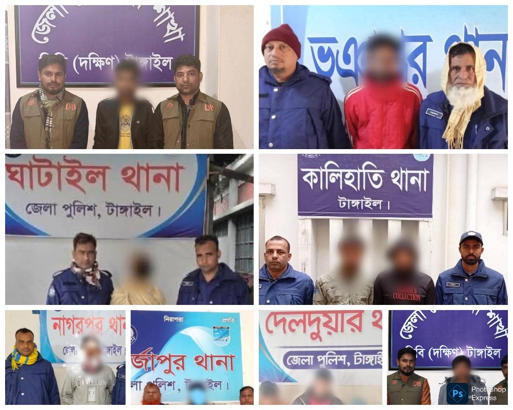 টাঙ্গাইল জেলা পুলিশের অভিযানে মাদক উদ্ধারসহ বিভিন্ন মামলায় গ্রেফতার ৪০