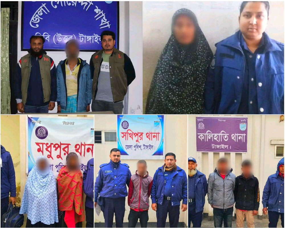 টাঙ্গাইলে জেলা পুলিশের টানা অভিযানে ৮ জন গ্রেপ্তার