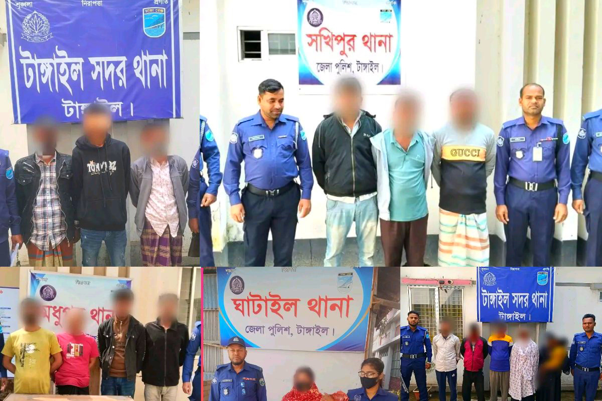 টাঙ্গাইল জেলা পুলিশের অভিযানে ২৪ জন গ্রেপ্তার