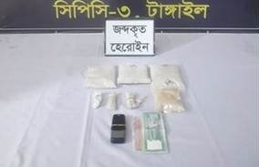 টাঙ্গাইলে বিপুল পরিমান হেরোইনসহ এক মাদক কারবারী গ্রেফতার