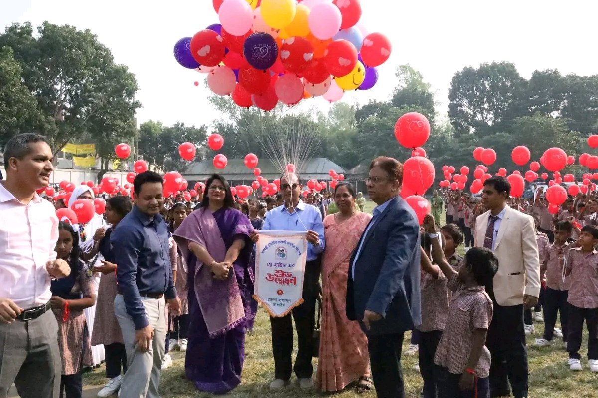 টাঙ্গাইলে প্রাথমিক বিদ্যালয়ে নবজাগরণশিশুদের জন্য প্লেগ্রাউন্ড কর্মসূচীর অগ্রগতি পরিদর্শন ও উদ্বোধন করেন।