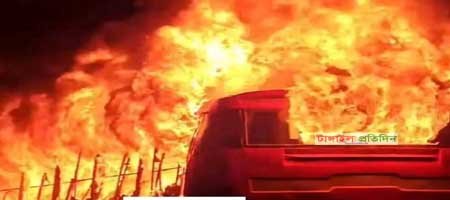 টাঙ্গাইলের মধুপুরে বিনিময় পরিবহনের একটি গাড়িতে আগুন।