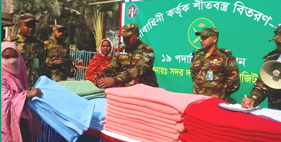 ভূঞাপুরে দুঃস্থ মানুষের পাশে বাংলাদেশ সেনাবাহিনী ২০০ শীতার্ত মানুষের মাঝে কম্বল ও শিশুদের শীতবস্ত্র বিতরণ শীতার্ত দুঃস্থ ও অসহায় মানুষের পাশে দাঁড়িয়েছে বাংলাদেশ সেনাবাহিনী। টাঙ্গাইলের ভূঞাপুর উপজেলায় শীতবস্ত্র বিতরণ করে মানবিকতার অনন্য দৃষ্টান্ত স্থাপন করেছে সেনাবাহিনীর ১৯ পদাতিক ডিভিশনের আওতাধীন ৯৮ কম্পোজিট ব্রিগেড।শনিবার (১০ জানুয়ারি) সকালে ভূঞাপুর উপজেলার চর পাথাইলকান্দি এলাকায় যমুনা সেনানিবাসের উদ্যোগে এ শীতবস্ত্র বিতরণ কার্যক্রম অনুষ্ঠিত হয়। এ সময় প্রায় ২০০ জন দুঃস্থ ও অসহায় শীতার্ত মানুষের মাঝে কম্বল বিতরণ করা হয়। পাশাপাশি এলাকার দরিদ্র ও সুবিধাবঞ্চিত ১০ জন শিশুর মধ্যেও শীতবস্ত্র বিতরণ করা হয়।শীতবস্ত্র বিতরণ অনুষ্ঠানে উপস্থিত ছিলেন ৯৮ কম্পোজিট ব্রিগেডের স্টাফ অফিসার মেজর নাজমুস সালেহীন সৌরভ, যমুনা সেনানিবাসের অন্যান্য সামরিক কর্মকর্তা ছাড়াও স্থানীয় জনপ্রতিনিধি ও গণ্যমান্য ব্যক্তিবর্গ।অনুষ্ঠানে সেনাবাহিনীর পক্ষ থেকে জানানো হয় প্রতি বছরের মতো চলতি শীত মৌসুমেও অসহায় ও দরিদ্র মানুষের কষ্ট লাঘবে বাংলাদেশ সেনাবাহিনী নিয়মিতভাবে শীতবস্ত্র বিতরণসহ বিভিন্ন জনসেবামূলক কার্যক্রম পরিচালনা করে আসছে। বিশেষ করে ১৯ পদাতিক ডিভিশন ও ঘাটাইল অঞ্চলের সেনাসদস্যরা দুর্গম ও চরাঞ্চলের মানুষের পাশে দাঁড়িয়ে মানবিক দায়িত্ব পালন করে যাচ্ছেন।সেনাবাহিনীর কর্মকর্তারা আরও বলেন মানবিক সহায়তা ওজনকল্যাণমূলক কর্মকাণ্ডের মাধ্যমে সাধারণ মানুষের পাশে থাকা সেনাবাহিনীর একটি নিয়মিত কার্যক্রম যা ভবিষ্যতেও অব্যাহত থাকবে।এ ধরনের উদ্যোগে সন্তোষ প্রকাশ করে স্থানীয়রা বলেন শীতের এই সময়ে সেনাবাহিনীর সহায়তা তাদের জন্য বড় আশীর্বাদ হয়ে এসেছে। তারা বাংলাদেশ সেনাবাহিনীর প্রতি কৃতজ্ঞতা ও ধন্যবাদ জানান।
